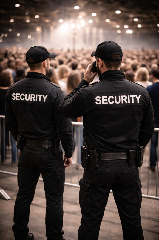 Einlass, Besucherlenkung, Sperrzonen, Deeskalation und die saubere Abstimmung mit Orga, Technik und Sicherheitskonzept.
